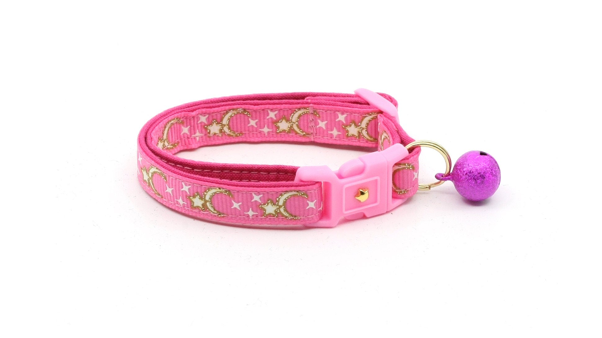 Gold Moons and Stars on Bright Pink Cat Collar
