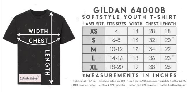 T-shirt brands typically include Gildan softstyle, Bella Canvas, Tultex or similar.